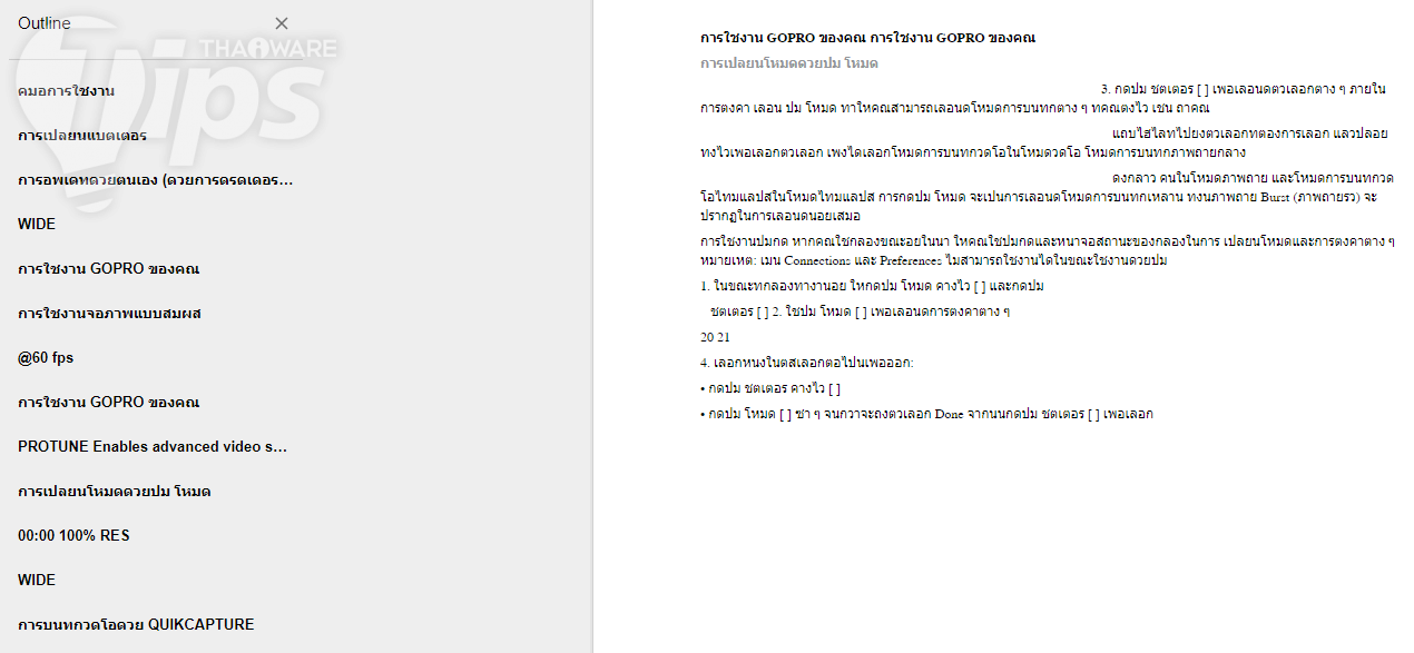 ทดลองแปลง PDF พบว่าหมวดหมู่ถูกสร้างแยกมาให้อัตโนมัติ แต่อย่างไรก็ตาม พบว่าหากเป็นภาษาไทย วรรณยุกต์จะหายไป
