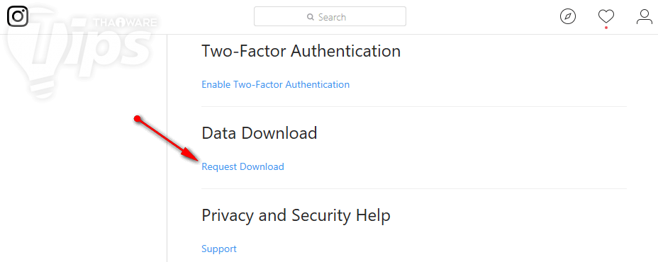 ขั้นตอนการทำก็ไม่ยาก ให้เราไปที่เว็บไซต์ https://www.instagram.com แล้วเข้าระบบด้วยบัญชี Instagram ของเรา ไปที่หน้าหลักของเรา จากนั้นคลิกไปที่รูปเฟือง แล้วคลิกเลือกเมนู Privacy and Security