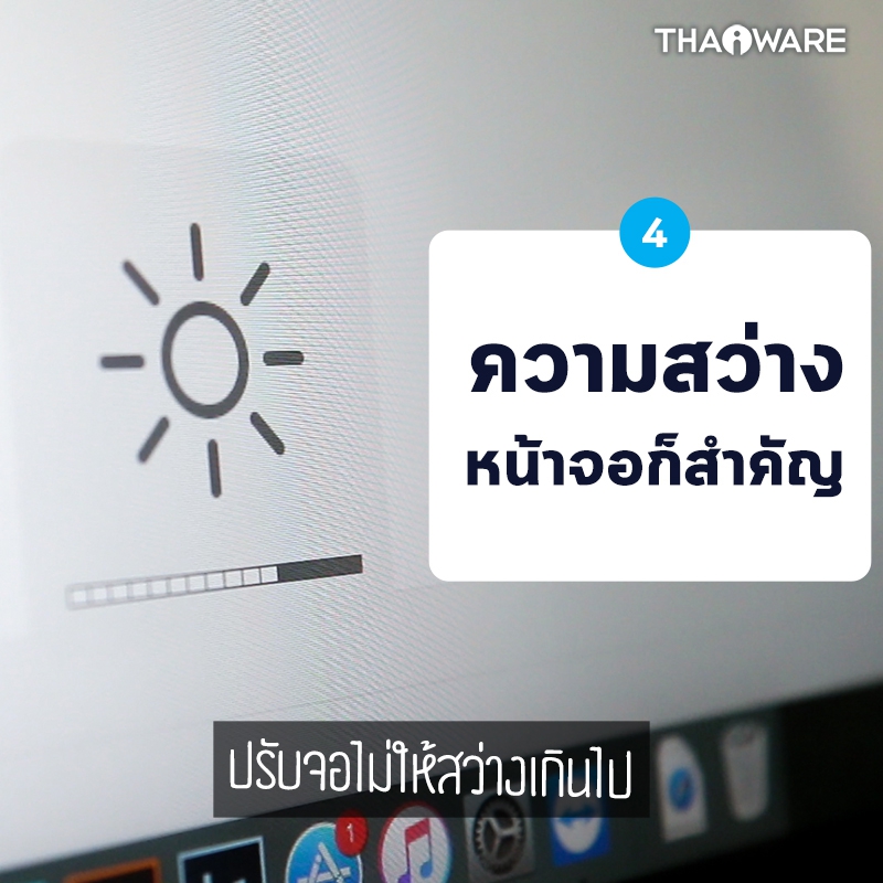 - ความสว่างของหน้าจอก็สำคัญ เราไม่ควรปรับจอให้สว่างเกินไป เพราะมันจะทำให้รูม่านตาของเราต้องหรี่มากขึ้น ทำให้ระยะจับภาพไกลกว่าเดิม ตาจะต้องทำงานหนักกว่าปกติเพื่อให้เรามองเห็นภาพได้ชัด