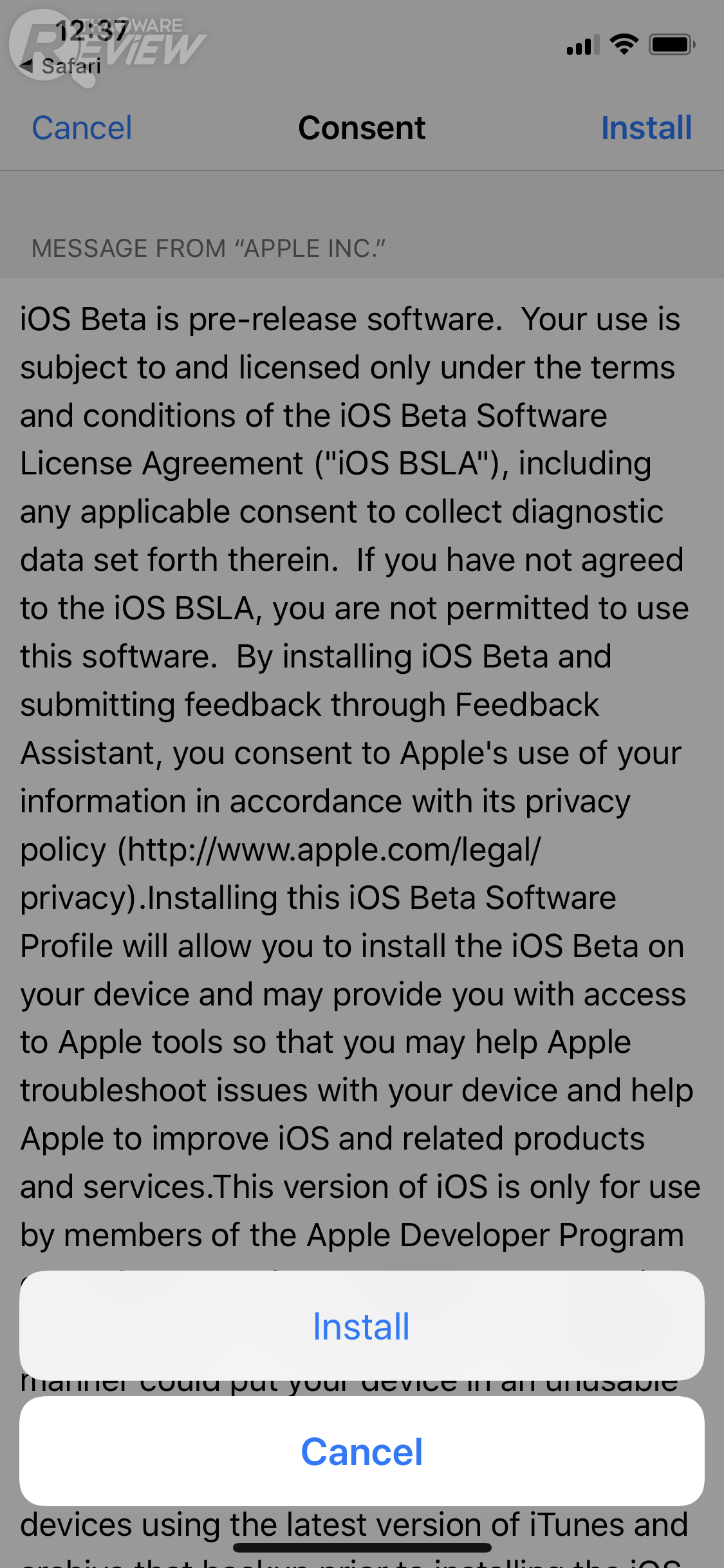 หลังจากติดตั้ง Profile เสร็จแล้ว มันจะบอกให้เราทำการ Restart เครื่องรอบหนึ่งครับ จากนั้นเข้าไปเช็คใน Software Update เราจะเห็น iOS 12 Public Beta แสดงขึ้นมาให้ดาวน์โหลดแล้ว