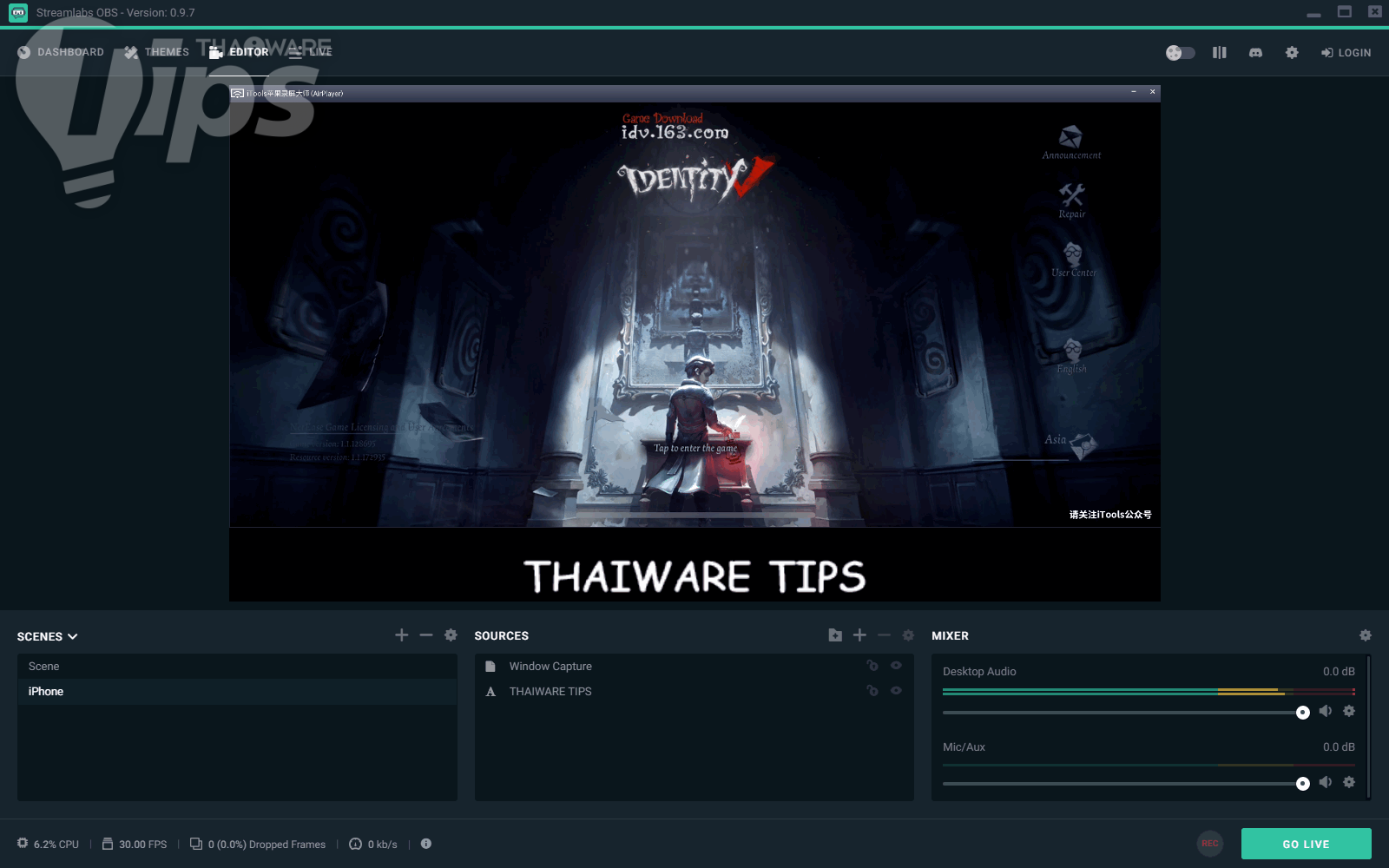 บนคอมพิวเตอร์ของเราภาพก็จะมีหน้าต่างของหน้าจอ iPhone/iPad ปรากฏขึ้นมาแล้ว (ในภาพคือผมเปิดเกมส์ Identity V อยู่) ขั้นตอนถัดไป คือ การไลฟ์หน้าต่างนี้ขึ้น Facebook/YouTube