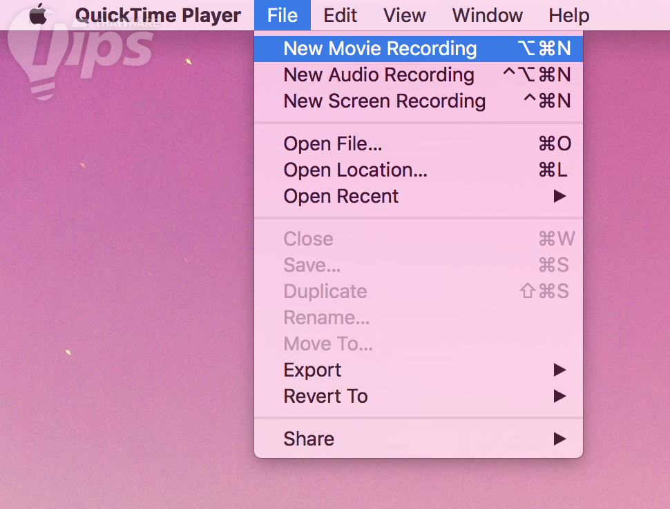 ให้เราเปิด QuickTime Player ขึ้นมา แล้วไปที่ File >> New Movie Recording