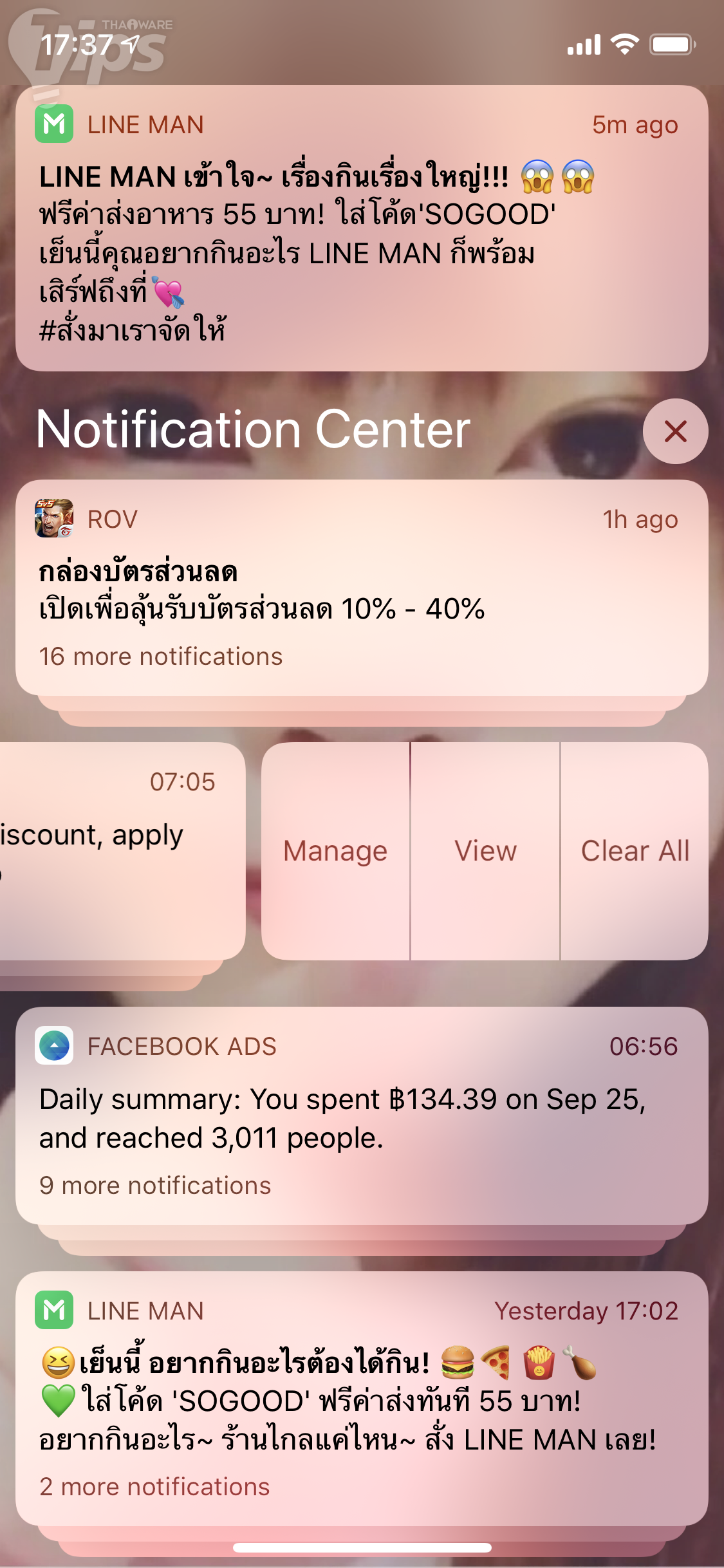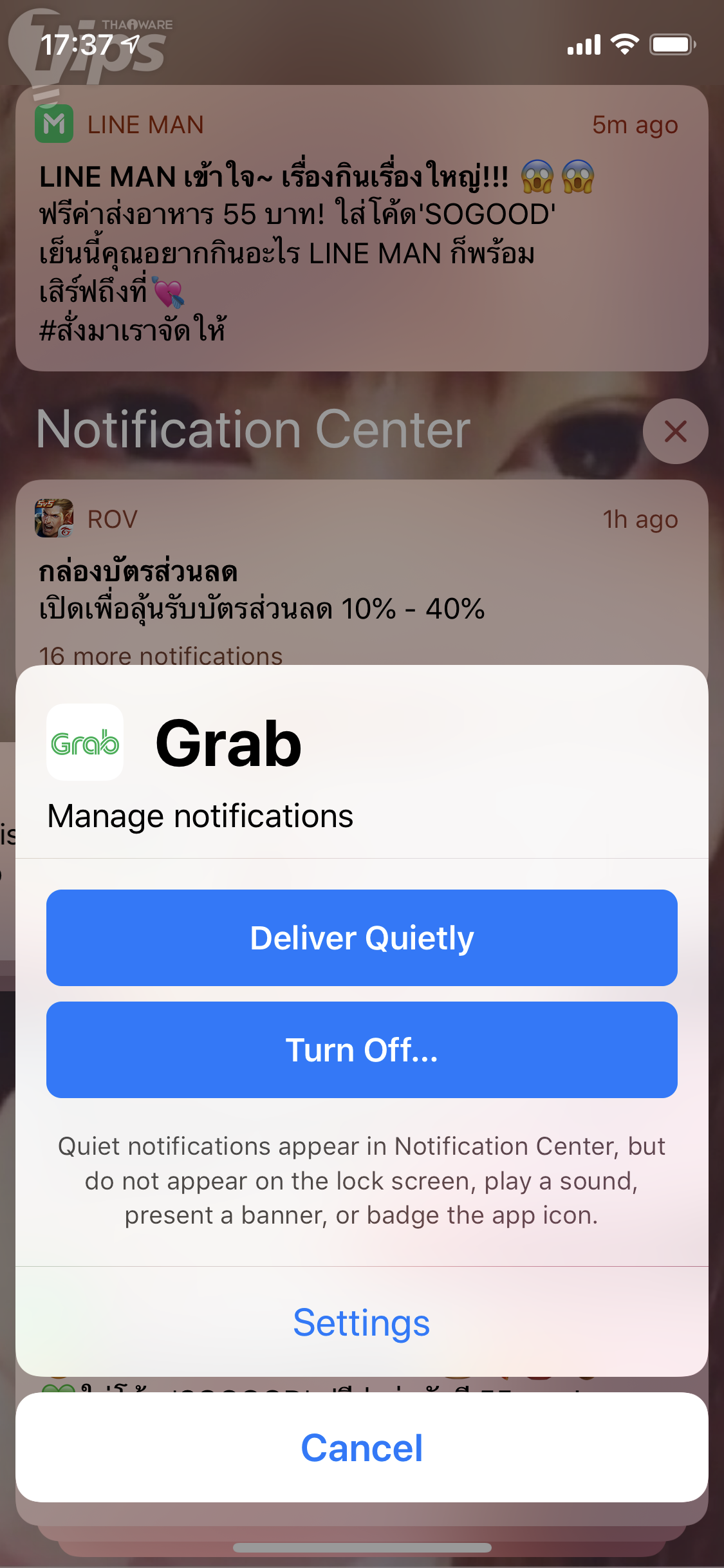 ใน iOS 12 การแจ้งเตือนบน Notification Center ได้มัดรวมการแสดงผลเอาไว้เป็นแบบกลุ่มแล้ว แทนที่จะเป็แจ้งเตือนทีละครั้งแบบเก่าแล้ว แตะหนึ่งครั้งในกลุ่มที่เราต้องการอ่าน เพื่อให้มันกระจายตัวออกมา และหากเรารู้สึกว่ามันเตือนเราถี่จนรำคาญ เราสามารถปิดมันง่ายๆ ด้วยวิธีดังนี้