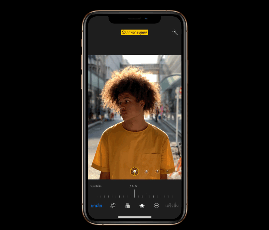หากใช้ iPhone XS หรือ iPhone XS Max เราสามารถเปลี่ยนโบเก้ หรือความเบลอของฉากหลัง ของภาพที่ถ่ายด้วยโหมด Portrait ในภายหลังได้ด้วย (ใครใช้ iPhone รุ่นเก่า ลองดาวน์โหลดแอปฯ Focos มาลองใช้ดูครับ)