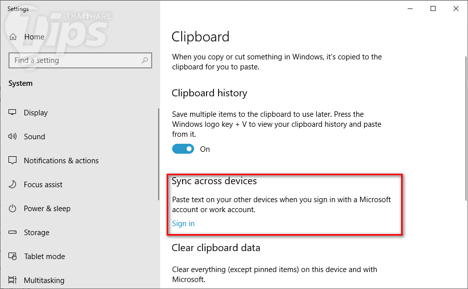 ของแถม พูดถึงการ Copy ข้อความ เราสามารถ Copy ในคอมฯ เครื่องหนึ่ง แล้วนำไป Paste ที่คอมฯ อีกเครื่องได้ด้วยนะ ด้วยการเปิดใช้งานคุณสมบัติ Sync across devices แล้วทำการเข้าระบบด้วยบัญชี Microsoft ซะ จากนั้นทุกเครื่องที่เราเข้าระบบเอาไว้จะ Sync ข้อมูลใน Clipboard ให้อัตโนมัติ