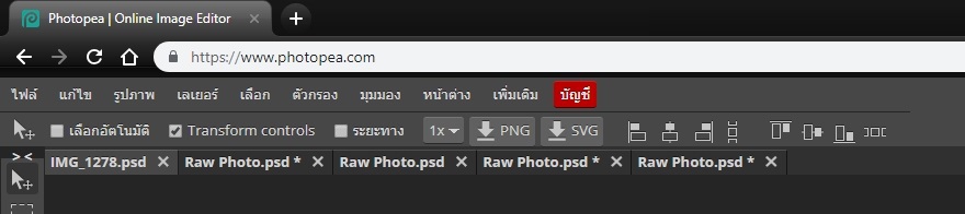 แต่จุดที่น่าสนใจสำหรับโปรแกรม Photopea ก็คือมันสามารถเปลี่ยนหน้าเมนูภาษาอังกฤษให้เป็นภาษาไทย ช่วยให้เข้าใจส่วนการใช้งานได้ไม่ยากนัก