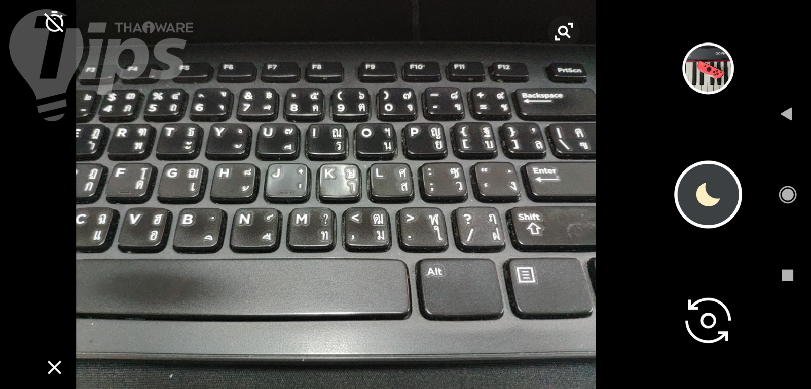 เวลาถ่ายรูปด้วยโหมดธรรมดา แอปฯ กล้องจะเตือนให้เราใช้ Night mode เมื่อแสงไม่พออีกด้วย