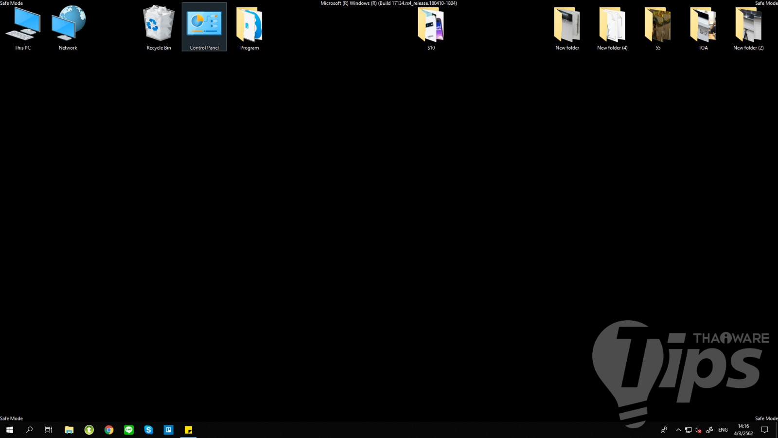 - รีสตาร์ตคอมพิวเตอร์เพื่อเข้าสู่ Safe Mode หลังจากที่รีสตาร์ตเสร็จแล้ว ระบบก็จะรันเข้า Safe Mode โดยอัตโนมัติ ถ้าหากเราอยากรู้ว่าเราอยู่ใน "หน้า Safe Mode" แล้วหรือยัง ก็ให้สังเกตที่มุมทั้ง 4 จะมีข้อความที่เขียนว่า "Safe Mode" แสดงอยู่