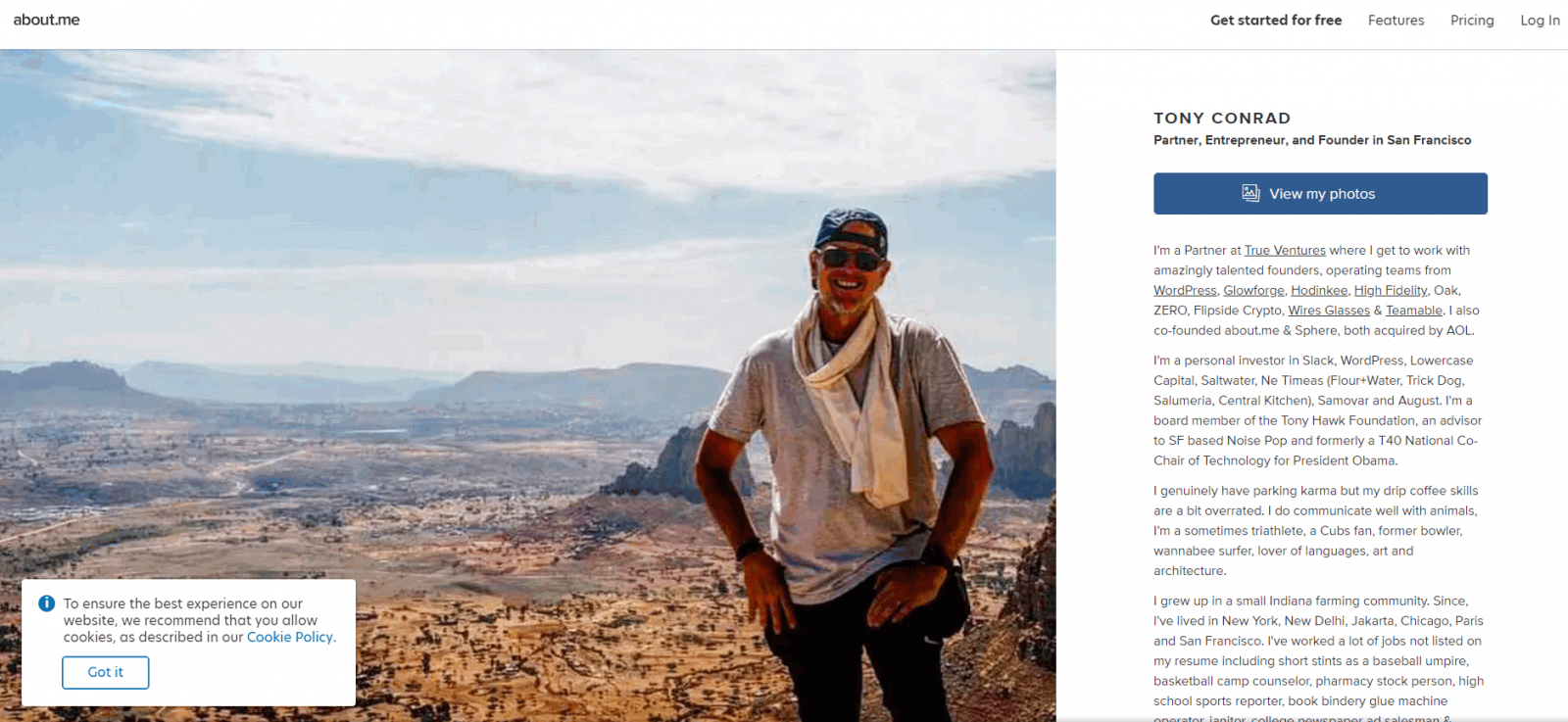 About.me มีความยืดหยุ่นค่อนข้างสูง สามารถใช้ได้ทั้งศิลปิน, ที่ปรึกษา หรืออาชีพอื่นๆ อย่างเช่น นักเขียน ผู้ใช้ไม่จำเป็นต้องรู้เรื่องการเขียนโค้ด หน้าตาเว็บไซต์แสดงผลได้ดีทั้งบนคอมพิวเตอร์ และสมาร์ทโฟน