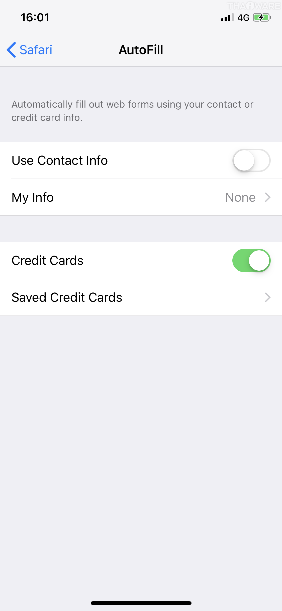 แตะเปิดใช้งานตรง Credit Cards จากนั้น แตะไปที่ Saved Credit Cards เพื่อทำการเพิ่มข้อมูลบัตร กด Done เมื่อใส่ข้อมูลเรียบร้อย