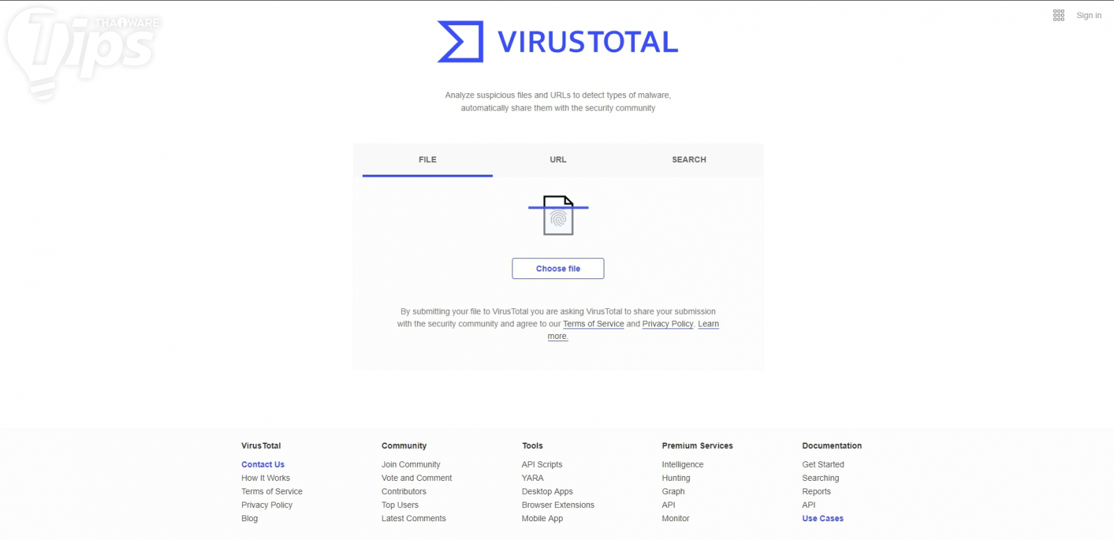 เมนู File สแกนหามัลแวร์จากไฟล์ | URLs ตรวจสอบเว็บไซต์ว่ามีอันตรายหรือไม่ | Search ตรวจสอบ IP และอื่นๆ