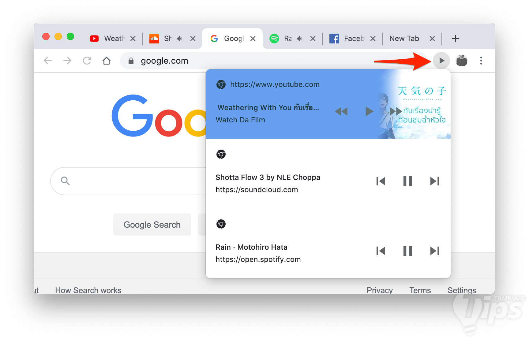 เพียงเท่านี้ ทุกคนก็สามารถเปิดแผงควบคุม Global Media Controls (ไอคอนตรงลูกศรสีแดง) เลือกเล่น สลับเพลง หรือ กดหยุดได้เลยง่ายๆ เวลาเปิดแท็บอะไรที่มีเสียงหรือวิดีโอเล่นอยู่ มันจะแสดงอยู่หน้านี้ทั้งหมด โดยที่เราไม่ต้องไปนั่งหาเองอีกต่อไป หวังว่าจะเป็นประโยชน์กับเพื่อนๆ ทุกคนนะครับ