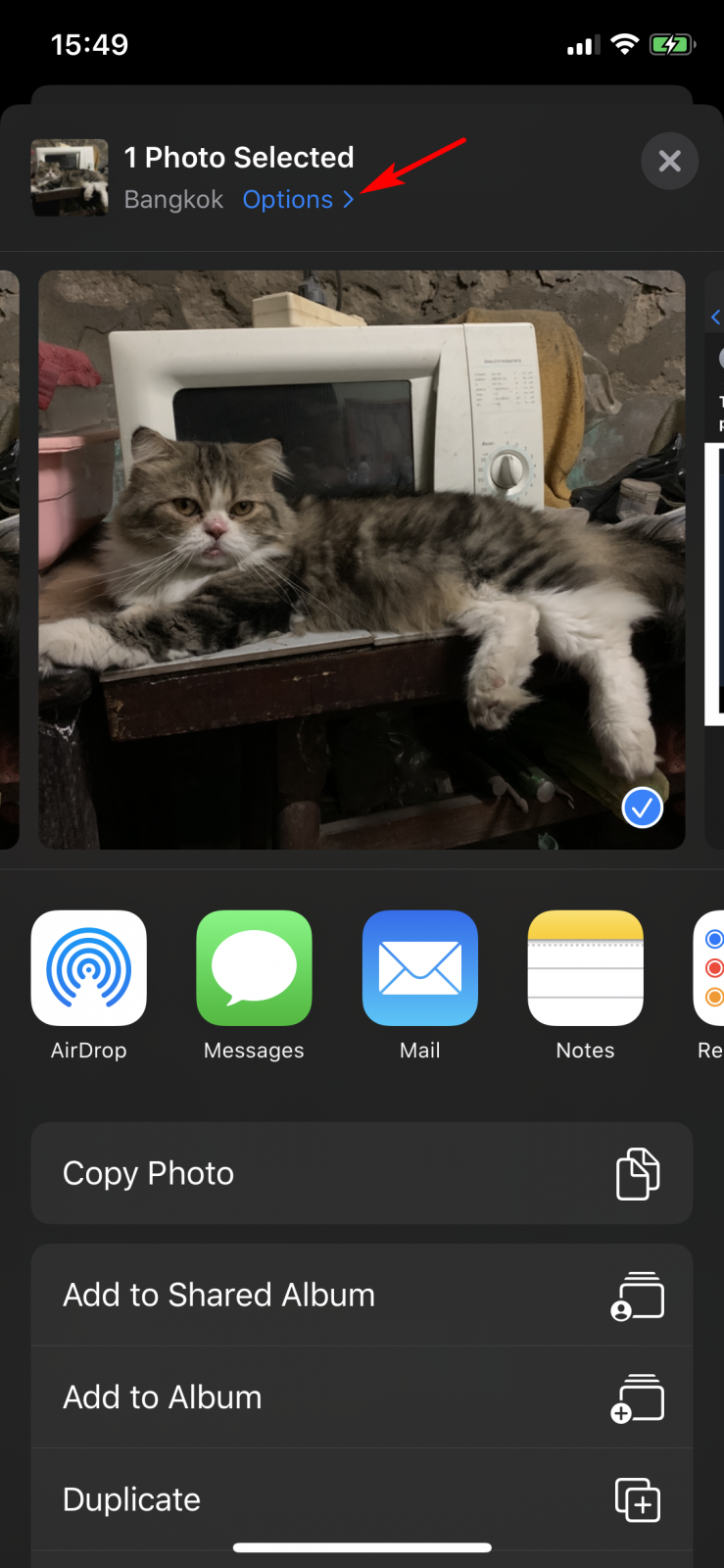 ด้วยการแตะไปที่เมนู Options ที่อยู่ด้านบน เวลาที่เราทำการแชร์