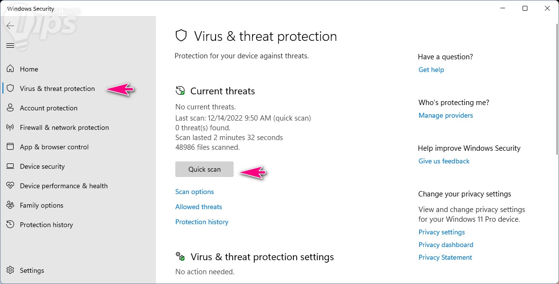 สำหรับการสแกนหามัลแวร์ หากไม่มี ซอฟต์แวร์ บุคคลที่สาม (3rd-Party) อยู่ก็ไม่เป็นไร ในอดีต Windows Defender ที่แถมมากับเครื่องมันอาจจะแย่ แต่ Windows Secuity ที่มีในระบบปฏิบัติการ Windows 11 นี่จัดว่าแจ่ม ใช้งานดีไม่แพ้โปรแกรมป้องกันมัลแวร์จากค่ายดังเลย สามารถเรียกใช้งาน Windows Secuity ได้ด้วยขั้นตอนดังนี้