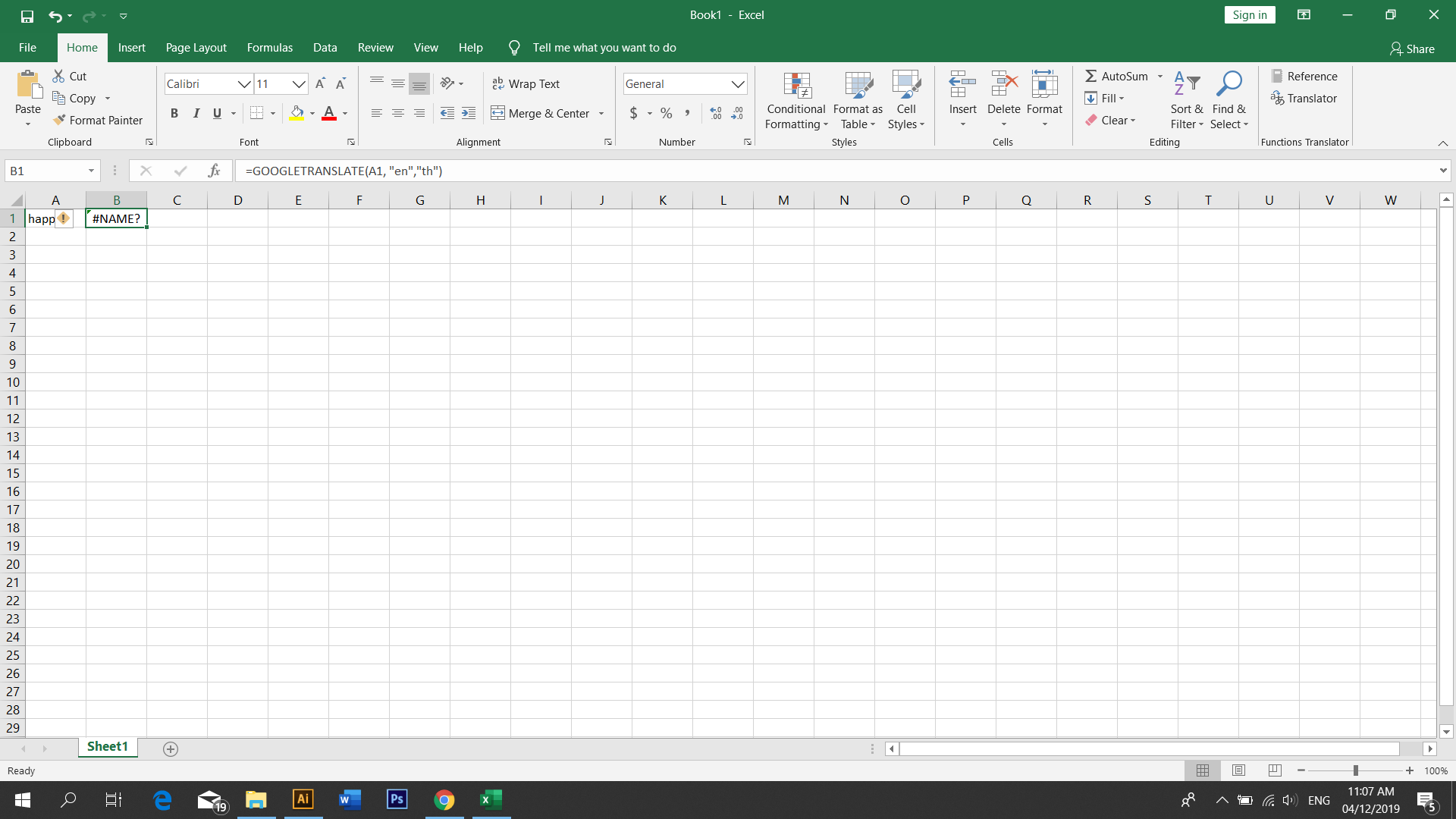 =GOOGLETRANSLATE(A3, "en", "th") หรือ =GOOGLETRANSLATE(ฺB10, "en", "th")