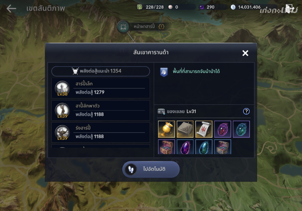 สมมติว่าเราจะไปจับที่เขตสันติภาพ เมื่อกดเข้าไปแล้วก็จะมีแผนที่ย่อยให้ดู บริเวณแถบด้านล่างให้เลือก "พื้นที่"