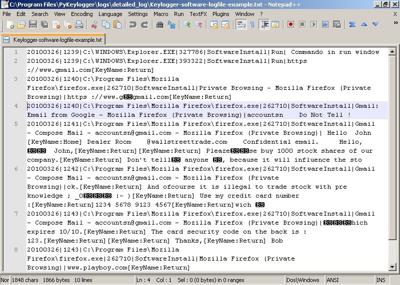 ข้อมูลการใช้งานจะถูกส่งไปยังเซิร์ฟเวอร์ของแฮกเกอร์ เพื่อคัดกรองข้อมูลที่สำคัญออกมาใช้ประโยชน์ในทางมิชอบ เช่นพวกบัญชี, รหัสผ่าน, ข้อมูลบัตรเครดิต ฯลฯ (ข้อมูลเกี่ยวกับ Keylogger เพิ่มเติม)