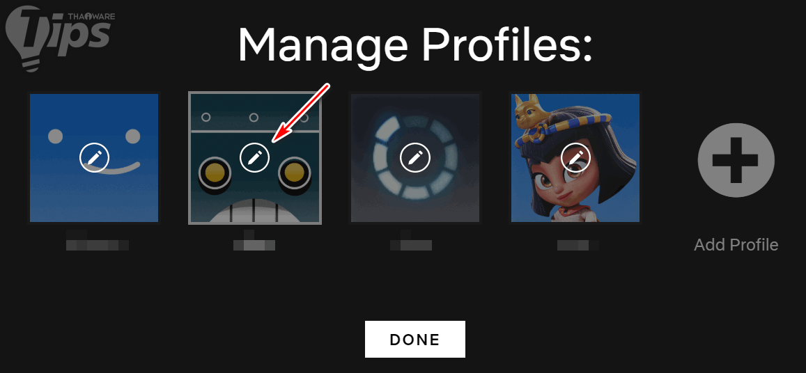 ให้เราเข้าระบบ Netflix ผ่านเว็บเบราว์เซอร์ แล้วคลิกที่เมนู Manage Profiles