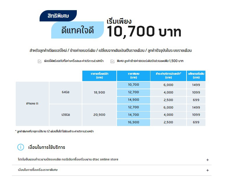 สำหรับโปร iPhone 11 จาก dtac นอกจากโปรโมชัน 'ดีแทคใจดี' และโปรจากบัตรเครดิตแล้ว ก็ยังมีสิทธิ์พิเศษจากลูกค้าที่ย้ายค่ายเบอร์เดิม ซึ่งจะได้ส่วนลดเพิ่มอีก 1,500 บาทด้วย