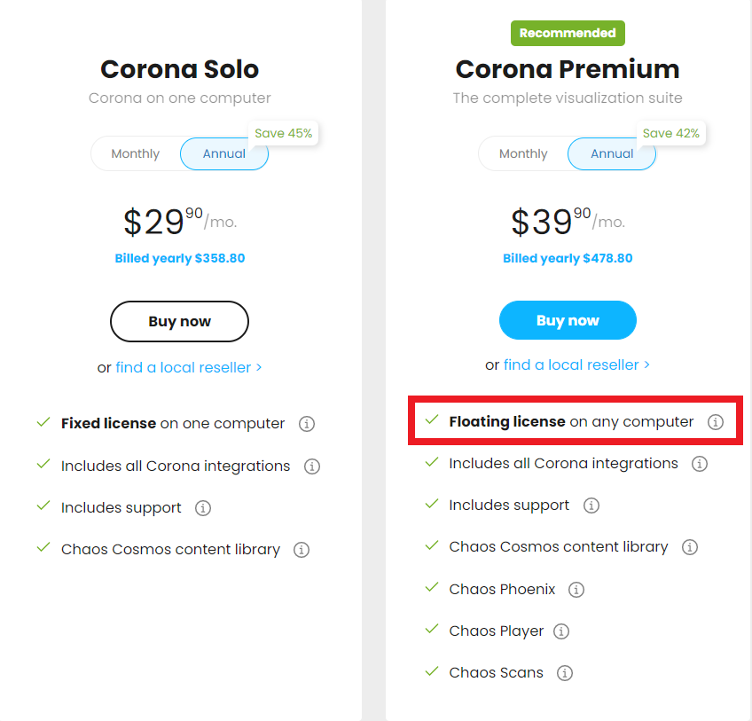 ภาพจาก : https://corona-renderer.com/prices-licensing