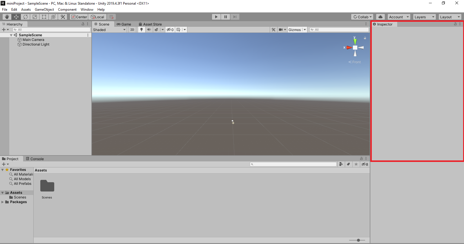 จะได้หน้าตาแบบนี้มาเริ่มทำความรู้จักส่วนต่างๆ ของ Unity กันเลย