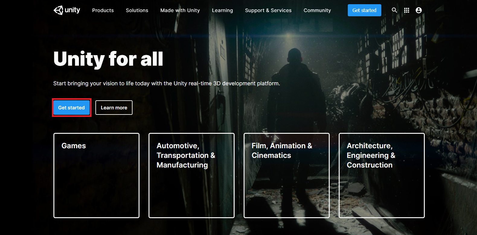 เข้าไปที่ Unity.com หรือ ดาวน์โหลดผ่านเว็บไซต์ Thaiware จากนั้นกด Get started
