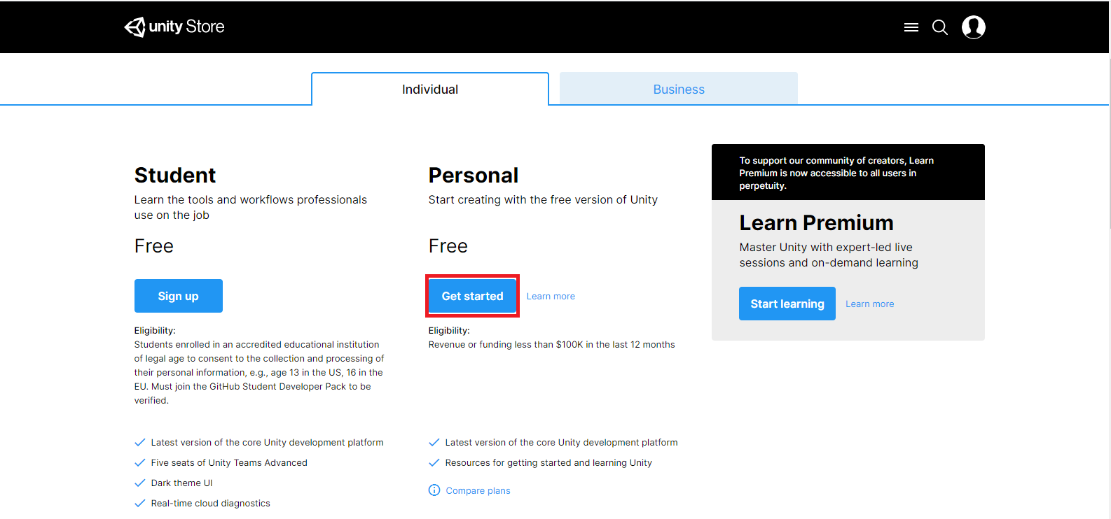 จะเป็นหน้านี้ ซึ่งเป็นหน้าสำหรับนักเรียน/นักศึกษา และบุคคลทั่วไป ให้เลือก Get started ตรง Personal