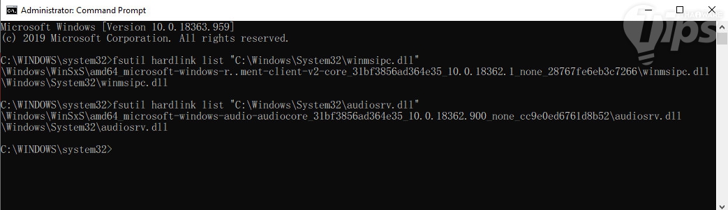 เช่น เราต้องการรู้ว่า audiosrv.dll เชื่อมต่อกับ Hard Links อะไรบ้างก็พิมพ์คำสั่งว่า