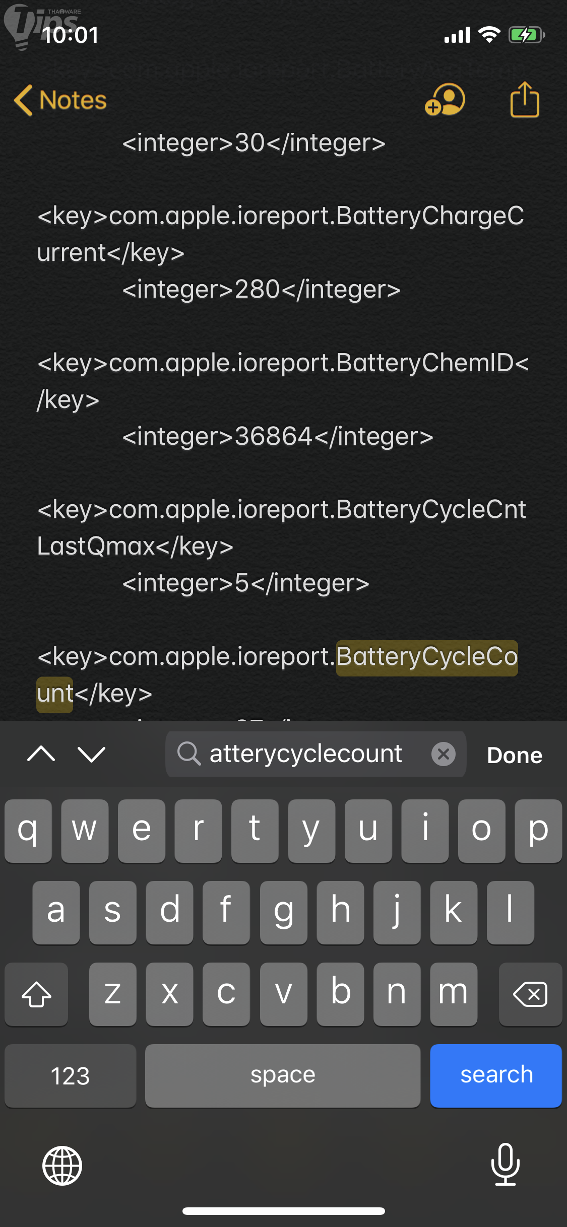 สังเกตตัวเลขที่อยู่ตามหลังข้อความที่เราค้นหา ค่านั้นแหละ คือ จำนวนรอบชาร์จแบตเตอรี่ของอุปกรณ์ที่เราใช้งานครับ