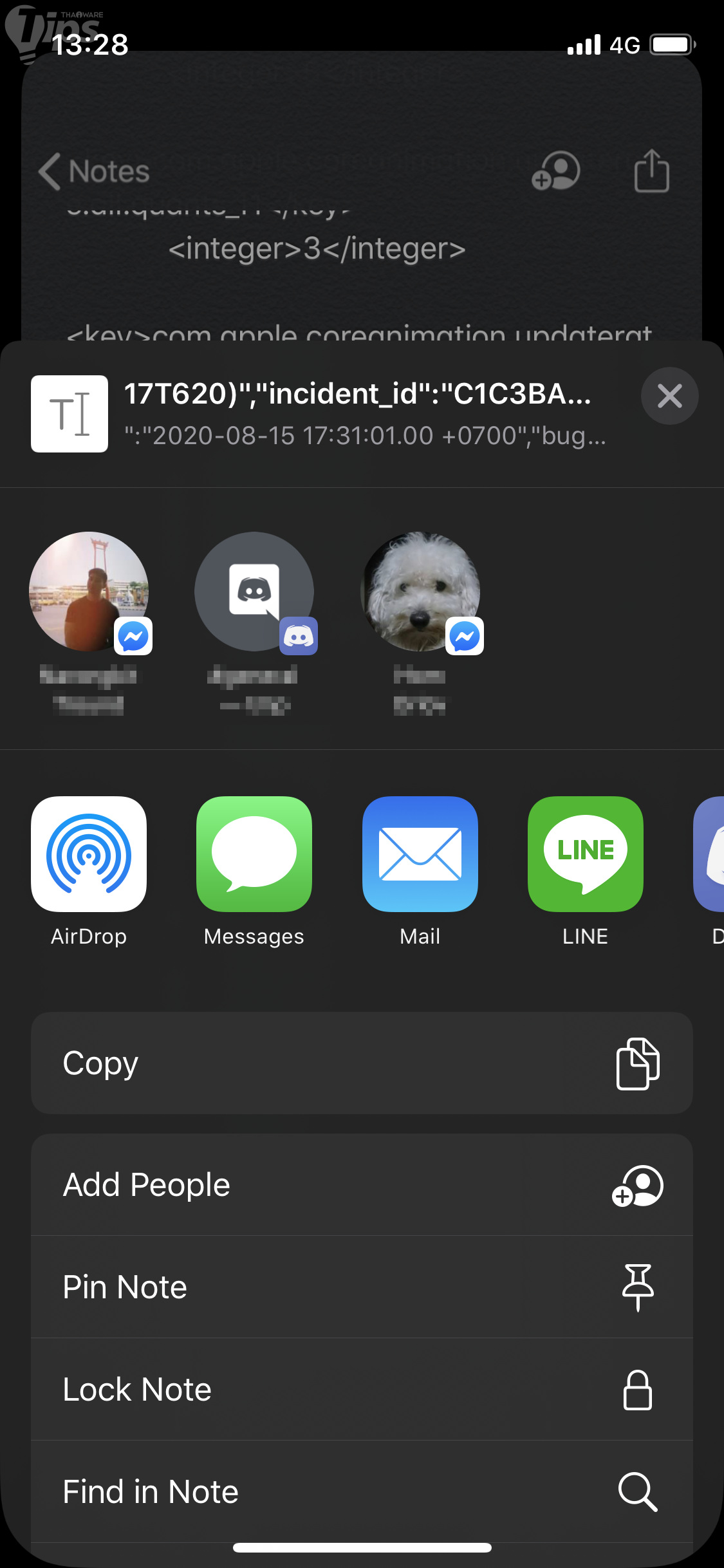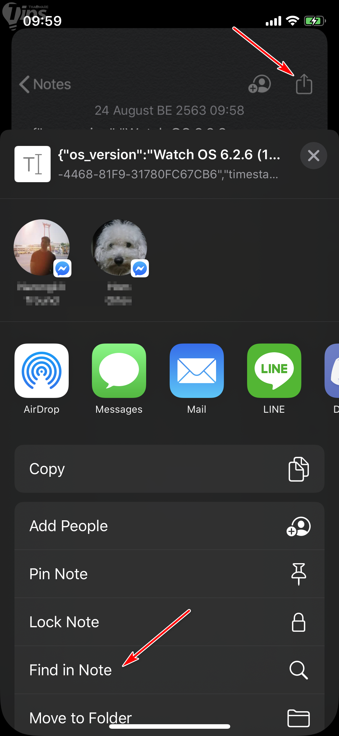 หลังจากที่เอา-hvความที่ Copy มาวางลงใน Note แล้ว ให้แตะที่เมนูขวาบน แล้วเลือก Find in Note