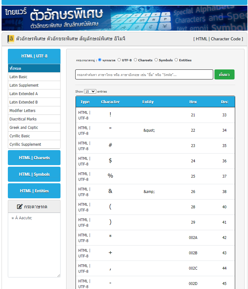 โดยรหัสเหล่านั้นมันจะยึดตามหลักของรหัสรูปแบบ ASCII และ Unicode ซึ่งบนเว็บไซต์ หรือโปรแกรมต่างๆ จะรองรับไม่เหมือนกัน