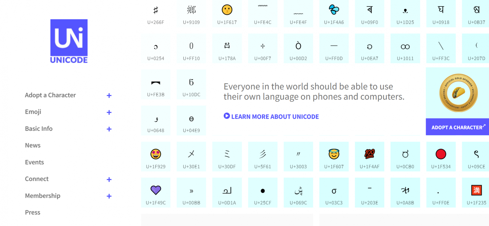 Unicode คือรหัสคอมพิวเตอร์แทนตัวอักขระที่ถูกพัฒนาโดย Unicode Consortium (สมาคม Unicode) ที่ต้องการสร้างมาตรฐานตัวอักษรขึ้นมาใหม่ เพราะ ASCII หรือ CharCode รุ่นก่อนๆ รองรับแค่ภาษาอังกฤษ และภาษาที่เพิ่มได้แค่ 256 ตัว ซึ่งปัจจุบัน Unicode มีการเก็บตัวอักขระไว้ถึง 1,112,064 ตัวจากทั่วโลก อักขระที่เห็นตอนต้นส่วนมากก็เป็น Unicode