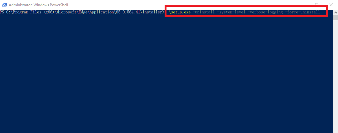 แต่ก็ไม่ได้หมายความว่าผู้ใช้จะไม่สามารถ Uninstall มันออกไปจากเครื่องได้ เพียงแต่วิธีการ Uninstall นั้นค่อนข้างที่จะยุ่งยากกว่าปกติอยู่ไม่น้อย เพราะผู้ใช้จะต้องเข้าไปที่ PowerShell (ตัวควบคุมคำสั่งและการทำงานของระบบปฏิบัติการและแอปพลิเคชันภายใน Windows ที่ปรับปรุงมาจาก Command-line) จึงจะ Uninstall Microsoft Edge ได้อย่างสมบูรณ์