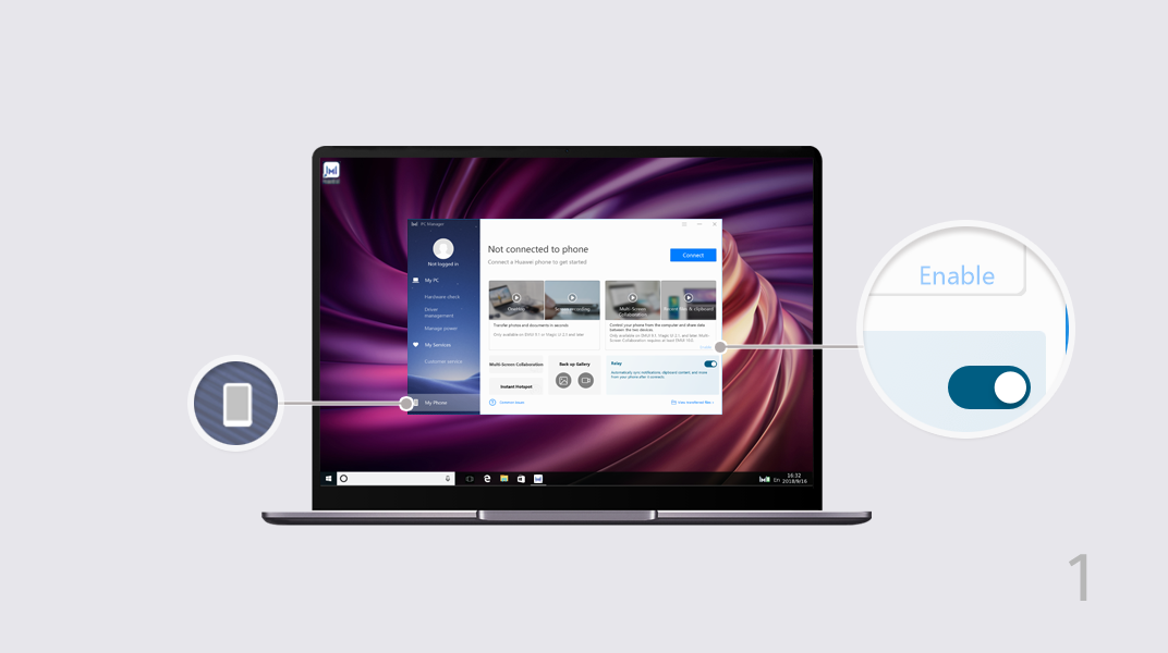 สำหรับแล็ปท็อปให้สังเกตง่ายๆ ว่ามีไอคอน HUAWEI Share หรือ PC Manager ที่ตัวเครื่องหรือไม่ และอัปเดต PC Manager เป็นเวอร์ชันล่าสุด