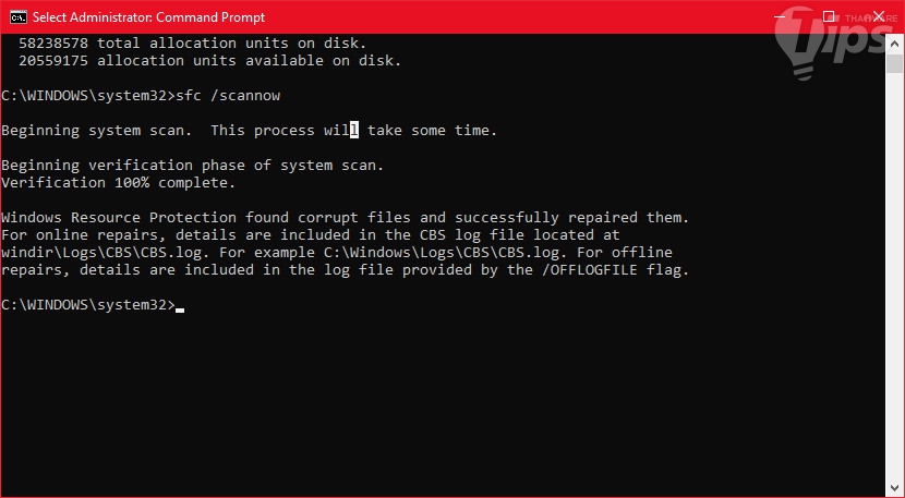 จากนั้น SFC จะทำการสแกนไฟล์ในระบบ หากสแกนเจอปัญหา มันจะแทนที่ไฟล์เดิมที่เสียหาย หรือหายไป โดยอ้างอิงข้อมูลของไฟล์จาก Resident component store (ข้อมูลนี้จะอยู่ใน โฟลเดอร์ WinSxS) ให้อัตโนมัติ