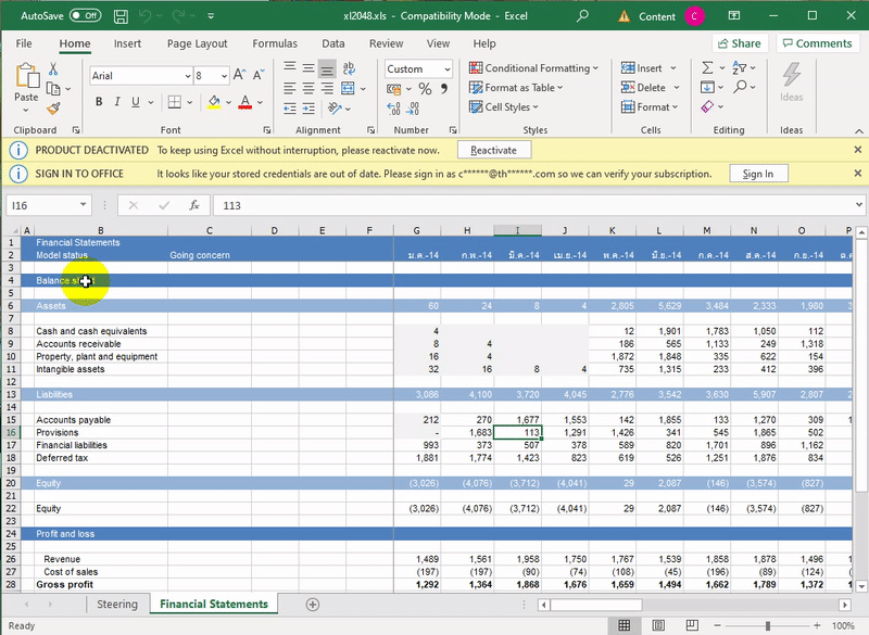 อ่านคู่มือการเล่นได้ในแท็บ Steering และเล่นเกมได้ในแท็บ Financial Statements
