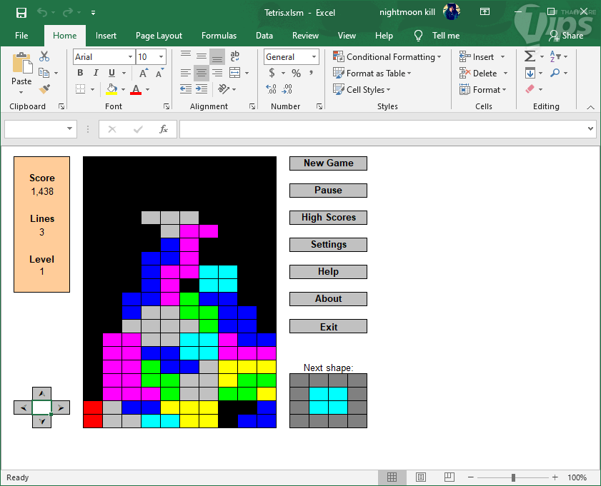 เกมเตอร์ติส เกมตัวต่อ Tetris นี่เราคงไม่ต้องบรรยายสรรพคุณมาก ว่าเล่นอย่างไร และสนุกขนาดไหน อย่างไรก็ตาม ด้วยข้อจำกัดของโปรแกรม Microsoft Excel การควบคุมการเคลื่อนที่ หรือควบคุมไม่ค่อยดีนัก แต่ก็พอเล่นแก้ขำได้แหละ