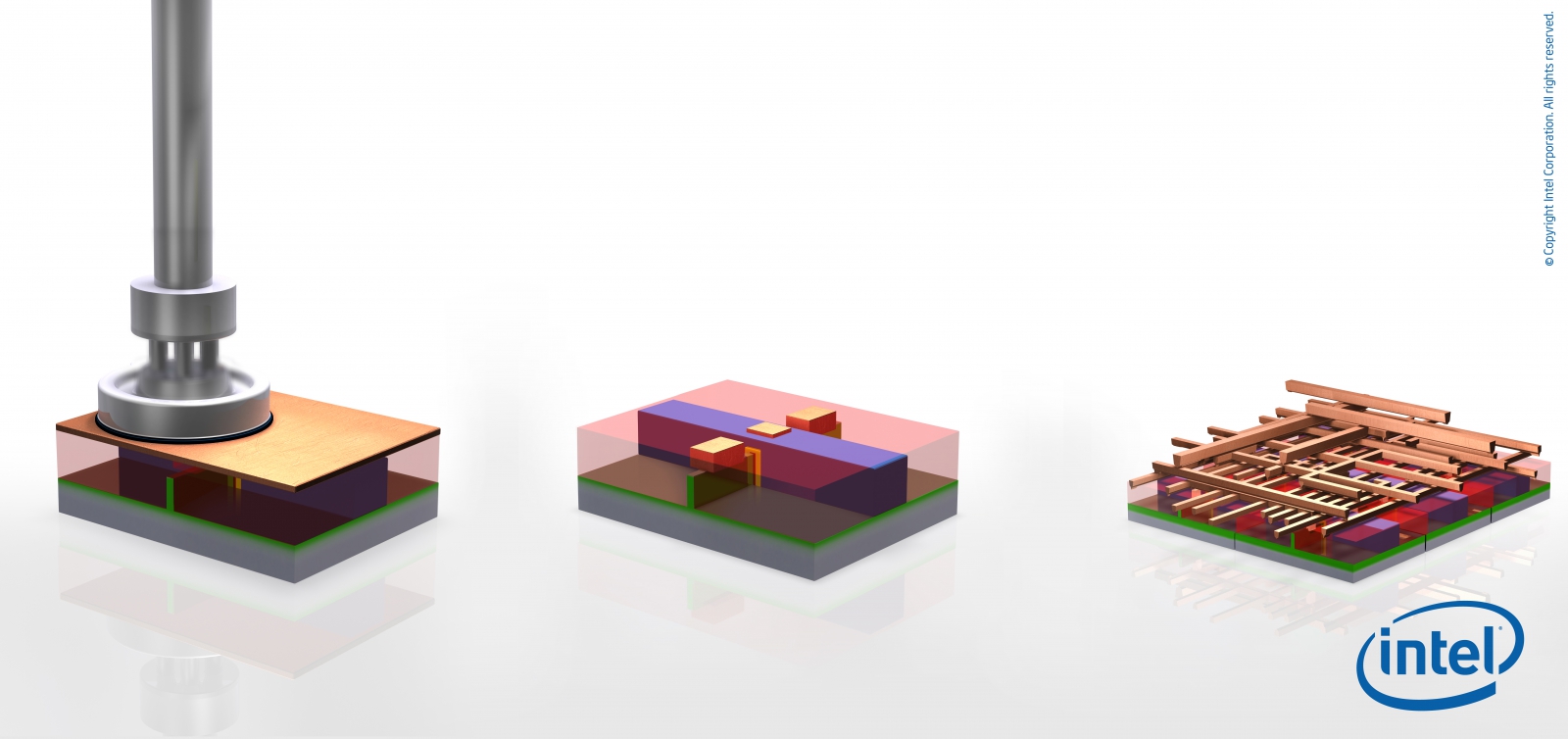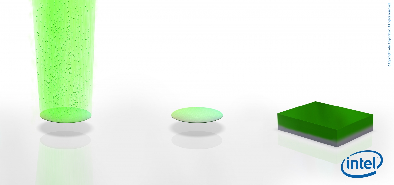 | Individual Die ชิ้นส่วนได (Die) ที่ถูกคัดเลือกมา ชิ้นนี้คือหน่วยประมวลผลขนาดเล็ก (Microprocessor) ที่ใช้เทคโนโลยีขนาด 22 นาโนเมตร ก่อนจะนำไปบรรจุลงบนแผ่นชิป | Packaging ประกอบรวมเข้ากับตัวกระจายความร้อนด้านบน (ฝาครอบเหล็ก) และ ส่วนต่อประสานกลไกไฟฟ้าสำหรับหน่วยประมวลผลด้านล่าง (แผ่นสีเขียว) | Processor ได้หน่วยประมวลผลที่เสร็จสมบูรณ์ ! จากกระบวนการการผลิต ที่ซับซ้อนที่สุดของมนุษย์ ใช้เวลาหลายร้อยขั้นตอนกว่าจะได้ CPU แต่ละชิ้น |