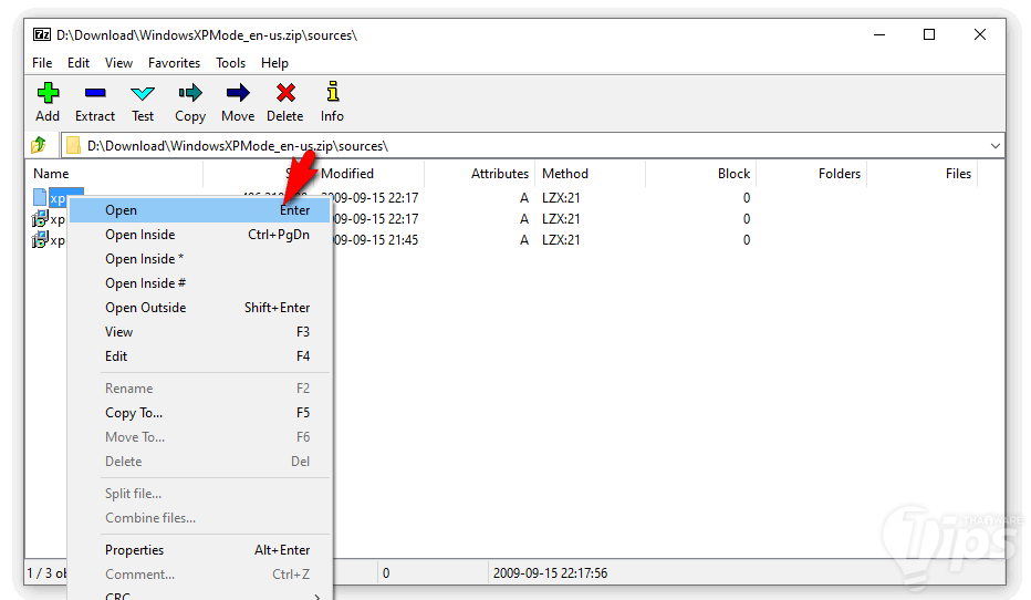จากนั้นให้เราใช้ โปรแกรมบีบอัดไฟล์ 7-Zip เปิดไฟล์ ถ้าใช้ตัวเปิดไฟล์ของ Windows Explorer จะไม่สามารถเปิดได้นะครับ (เราลอง WinRAR แล้ว พบว่าไม่ได้เหมือนกัน) เข้าไปที่โฟลเดอร์ Sources แล้ว เปิดไฟล์ที่ชื่อว่า XPM