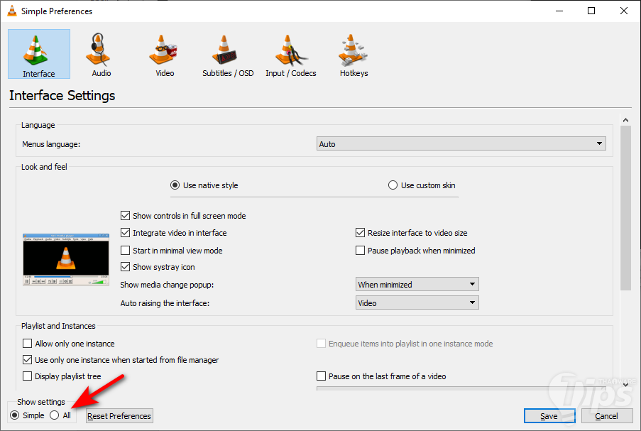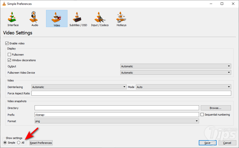 หลังจากติดตั้ง VLC เสร็จเรียบร้อยให้เราเปิดมันขึ้นมา คลิกไปที่เมนู Tools ตามด้วย Preferences สังเกตตรงซ้ายล่างจะมี Show Settings ให้เราติ๊กเลือก All ค่ะ