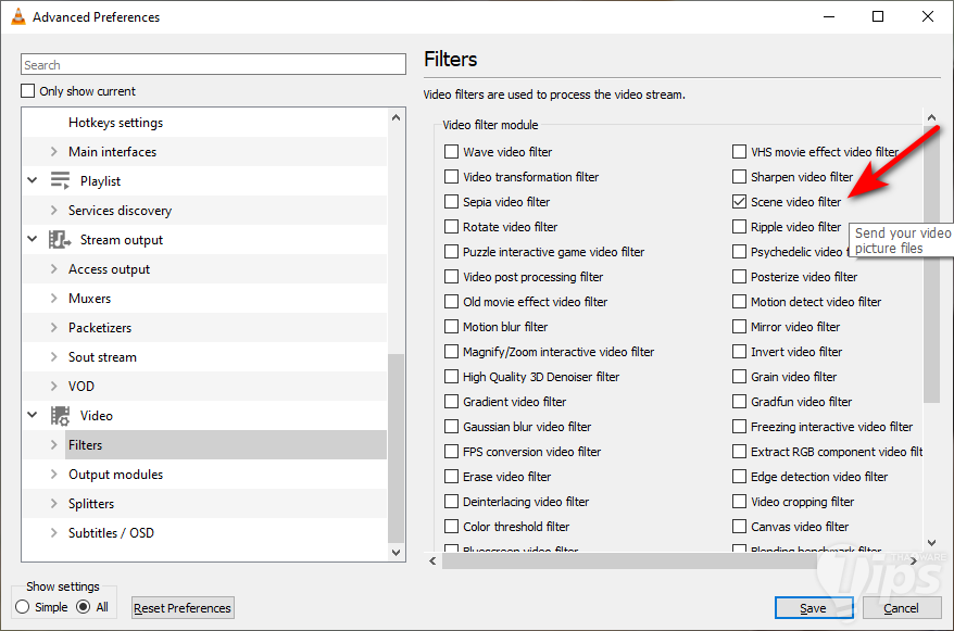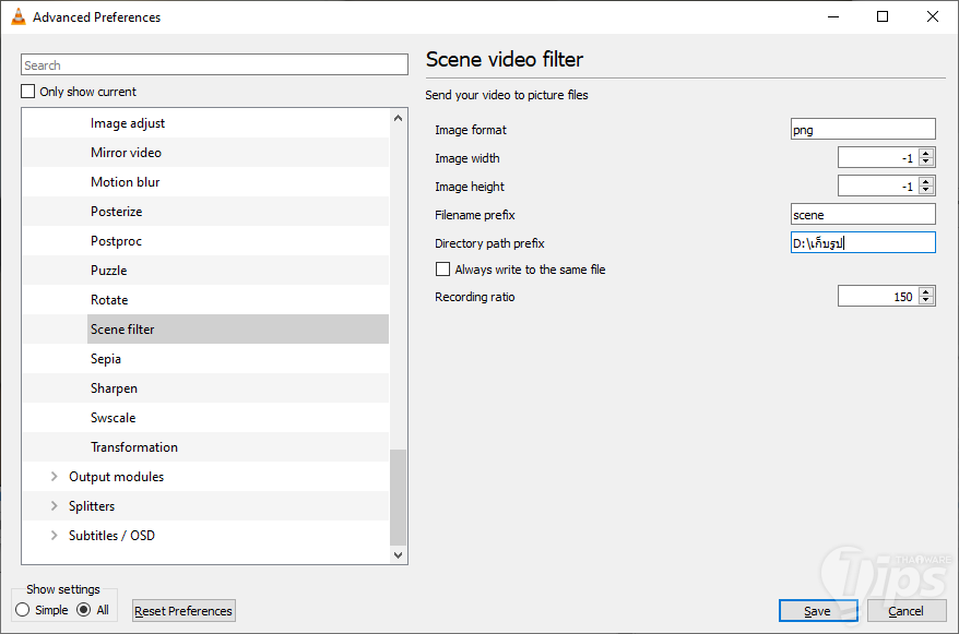 กลับที่หน้า Advanced Preferences ติ๊ก ☑ ถูกที่ Scene Ideo Filter แล้ว "คลิก Save"