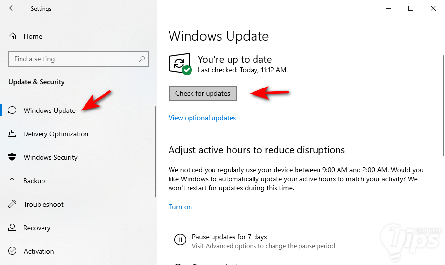 เมื่อปัญหามาจากการอัปเดต บางทีมันก็มาพร้อมบั๊ก และทาง Microsoft ก็อาจจะมีการปล่อยอัปเดตแก้ไขออกมาแล้ว แต่คอมพิวเตอร์ของเราอาจจะยังไม่ถึงกำหนดเวลาที่จะตรวจเช็คการอัปเดตอัตโนมัติ ลองเข้าไปเช็คด้วยตัวเองดูเผื่อว่าจะมีอัปเดตที่ช่วยแก้ปัญหาให้เราได้