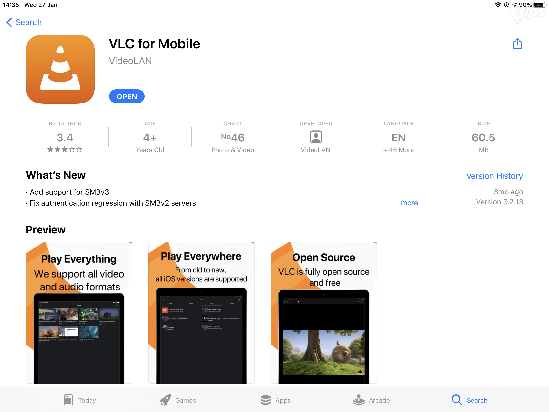 แอปพลิเคชันที่เราจะใช้เปิดในการเปิดไฟล์วิดีโอบนระบบปฏิบัติการ Windows ของเรา จริงๆ มีทำได้หลายตัวนะครับ แต่เราขอแนะนำเป็น VLC for Mobile เนื่องจากมันเป็นแอปพลิเคชันแบบ เปิดเผยซอร์สโค้ด (Open Source Application) ที่ใช้งานได้ฟรี แถมไม่มีโฆษณาด้วยแหละ