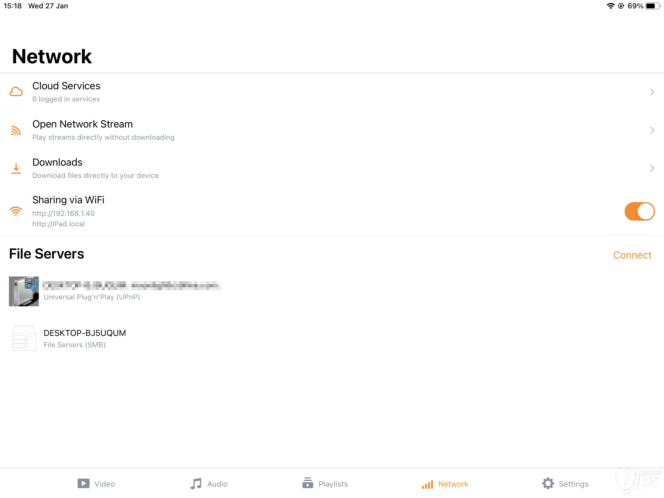 ลองแตะไปที่ "เมนู Network" ตรง File Servers จะเห็นชื่อเครื่องคอมพิวเตอร์ของเราอยู่ แตะเข้าไปเลยจ้า แต่เราจะพบว่ามันไม่เห็นไฟล์ในคอมพิวเตอร์ ไม่ต้องตกใจไป