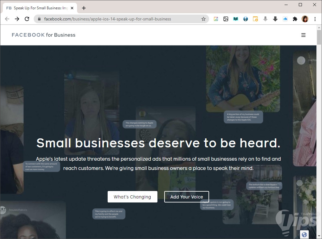 ภาพจาก https://www.facebook.com/business/apple-ios-14-speak-up-for-small-business