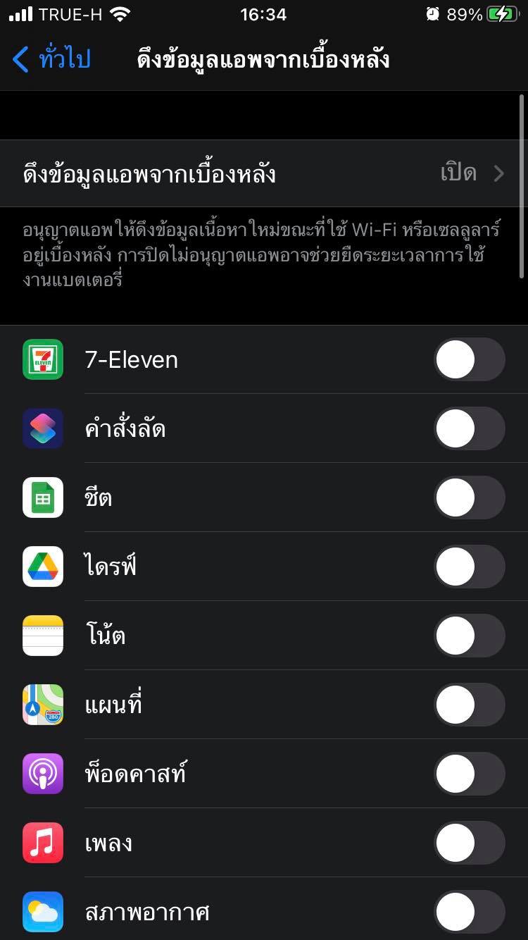 การปิดฟีเจอร์ Background App Refresh ให้เข้าไปที่ ไปที่ การตั้งค่า (Setting) → ทั่วไป(General) → ดึงข้อมูลแอปจากเบื้องหลัง (Background App Refresh) และเลือกปิดแอปพลิเคชันที่ต้องการ หรือปิดทั้งหมดเลยก็ได้