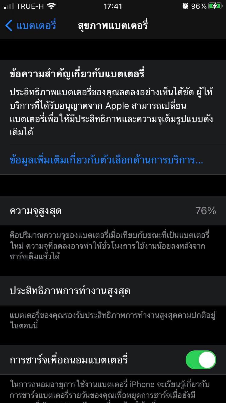 ปกติแบตเตอรี่ iPhone จะมีอายุการใช้งานตาม "รอบการชาร์จ (Charge Cycle)" อยู่ที่ 500 รอบ เมื่อใช้ไปนานเข้าประสิทธิภาพจะเริ่มดรอปลง ความจุน้อยลง ซึ่งคุณสามารถเช็คประสิทธิภาพของแบตเตอรี่ตัวเองได้ โดยเข้าไปที่ การตั้งค่า → แบตเตอรี่ → สุขภาพแบตเตอรี่
