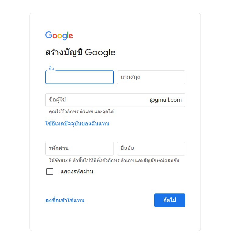 แต่ถ้าใครที่ยังไม่มีก็ต้องสมัคร ผ่าน Google.com หรือถ้ามีอีเมลส่วนตัวอยู่แล้ว บนหน้าสมัครก็คลิกคำว่า "ใช้อีเมลปัจจุบันของฉันแทน" ก็จะเป็นการใช้อีเมลส่วนตัวสมัครบัญชีผู้ใช้งานของกูเกิล (Google Account) แทน