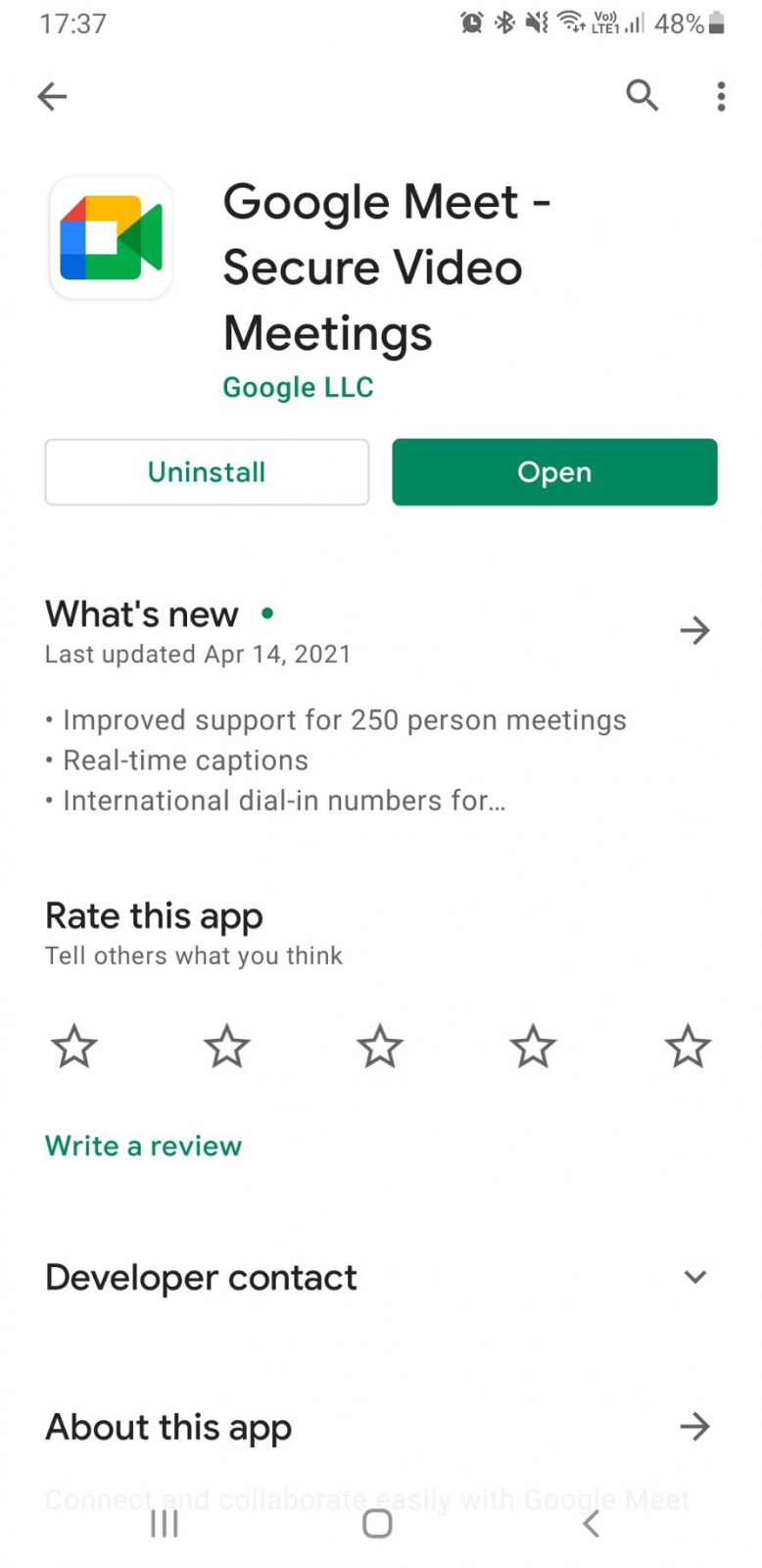 ขณะที่ฝั่งผู้ใช้ สมาร์ทโฟน/แท็บเล็ต ต้องดาวน์โหลดแอปพลิเคชัน Google Meet มาติดตั้งเสียก่อน โดยสามารถดาวน์โหลดได้ผ่าน Google Play และ App Store ได้เลย