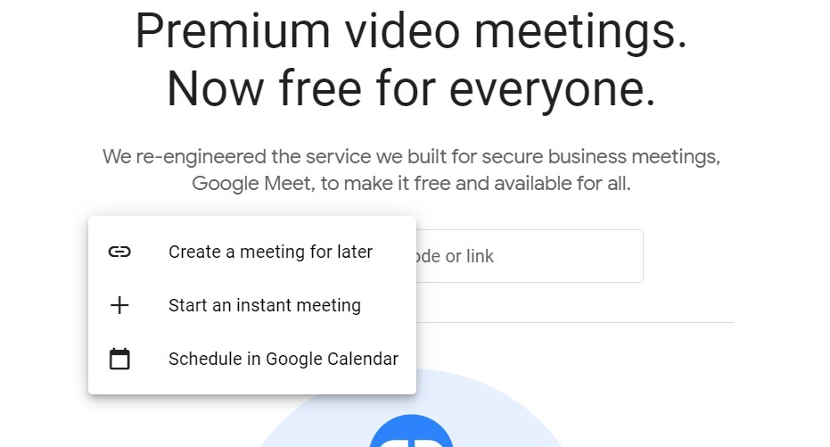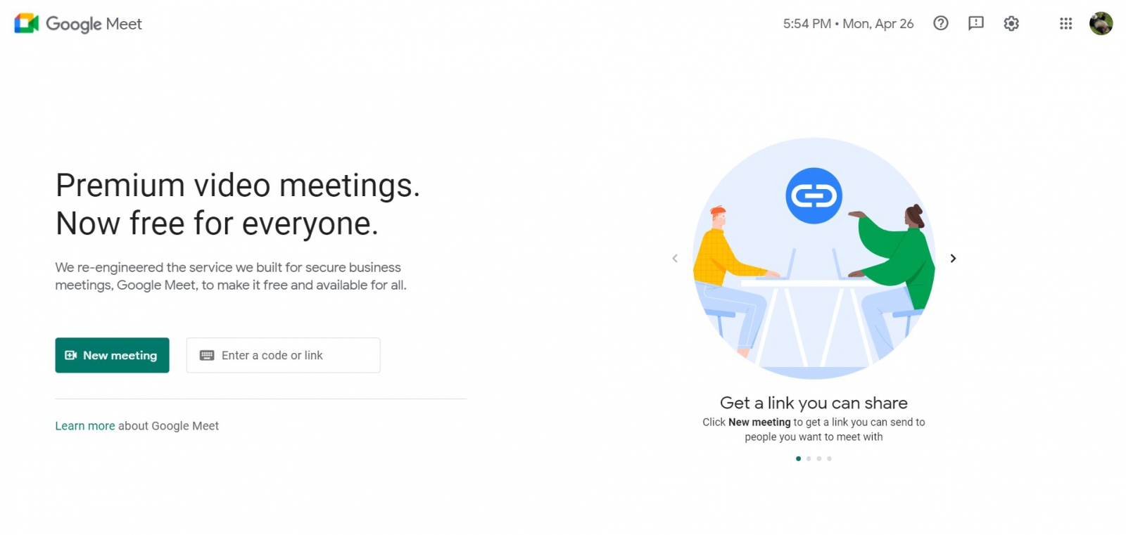 Google Meet คือหนึ่งในผลิตภัณฑ์ของ Google โดยมันเป็นแพลตฟอร์มประชุมออนไลน์ ที่เอาใช้สำหรับติดต่อพูดคุยกันผ่านวิดีโอคอล เพื่อใช้ประชุมออนไลน์ หรือ นัดประชุมผ่านออนไลน์ ซึ่งรองรับผู้เข้าร่วมได้สูงสุด 100 คน และใช้งานได้นานถึง 60 นาทีต่อครั้ง